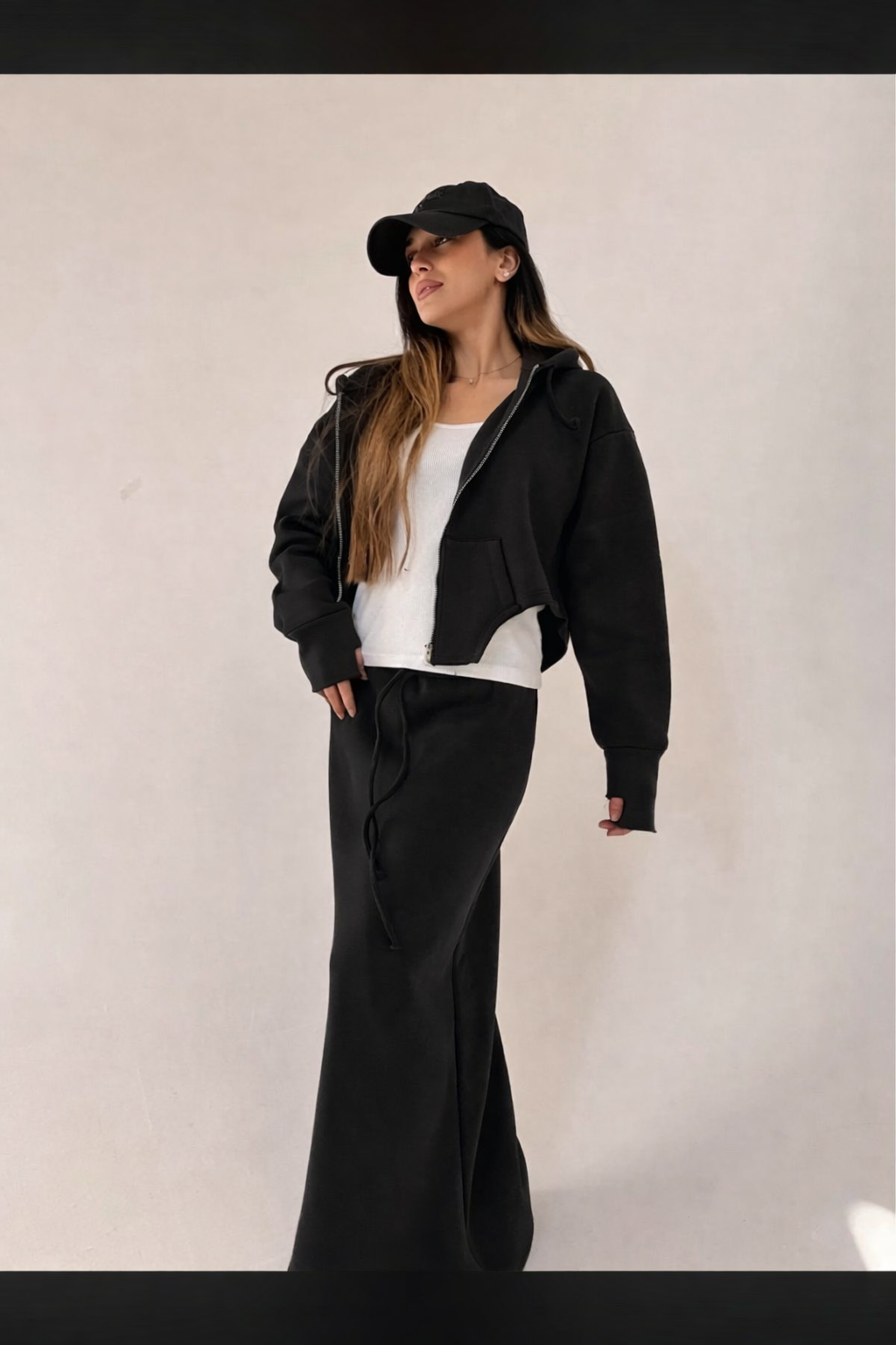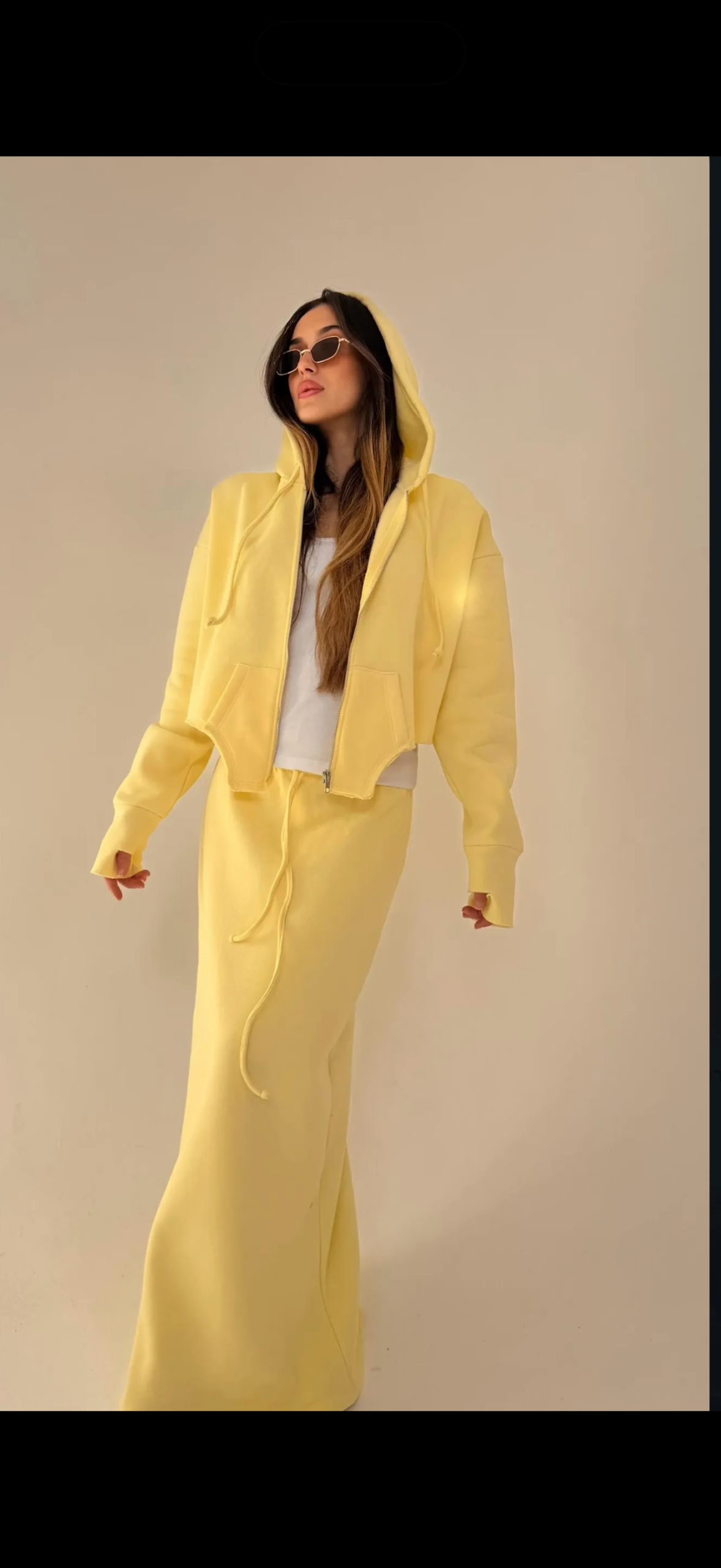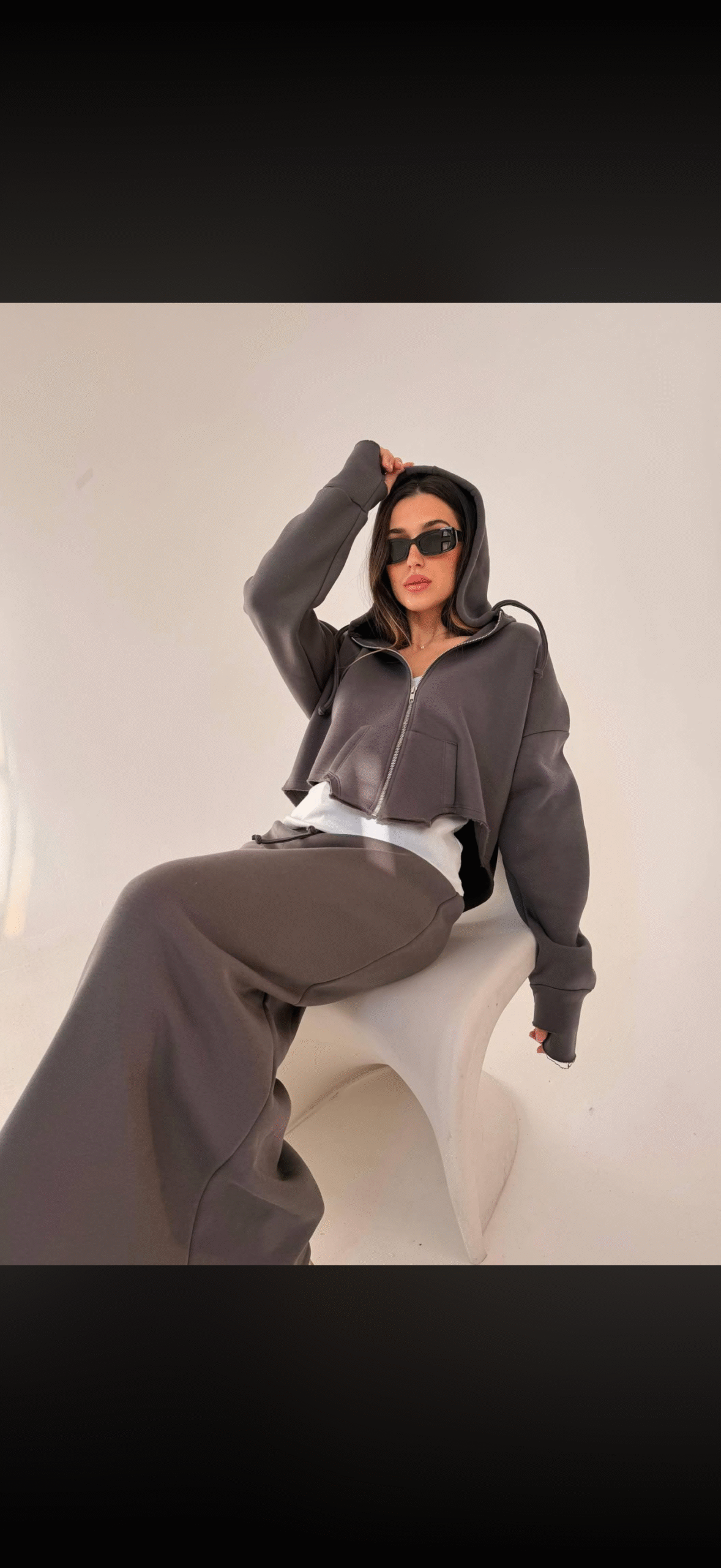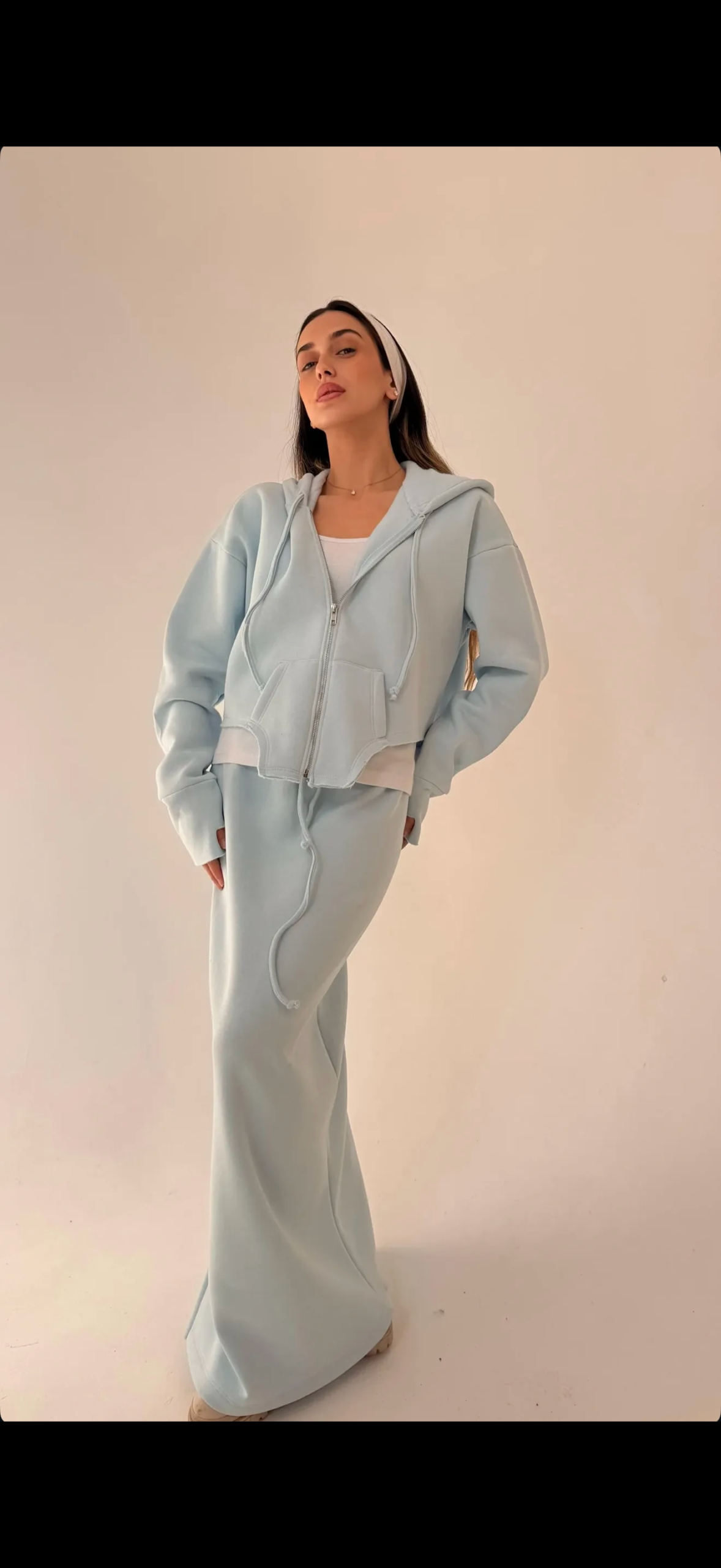 חליפה בסגנון ג׳קט מחוך בד פוטר הדוגמנית לובשת מידה 1