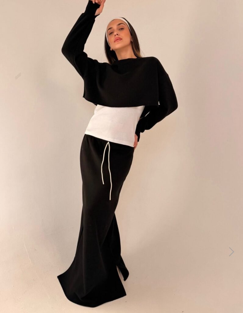 חליפת 3 חלקים בד פוטר הדוגמנית לובשת מידה 1